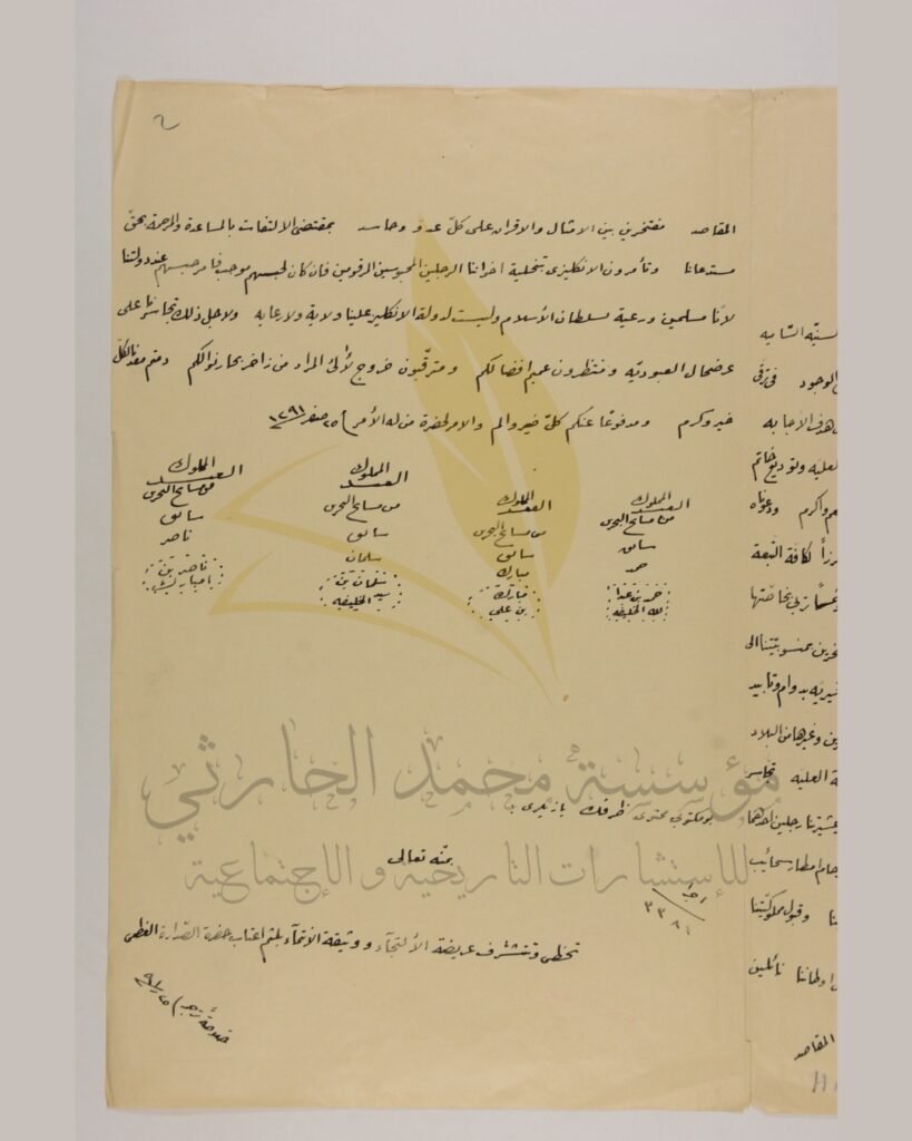 وثيقة عثمانية من اهل البحرين سنة 1291هجري موافق 1875ميلادي