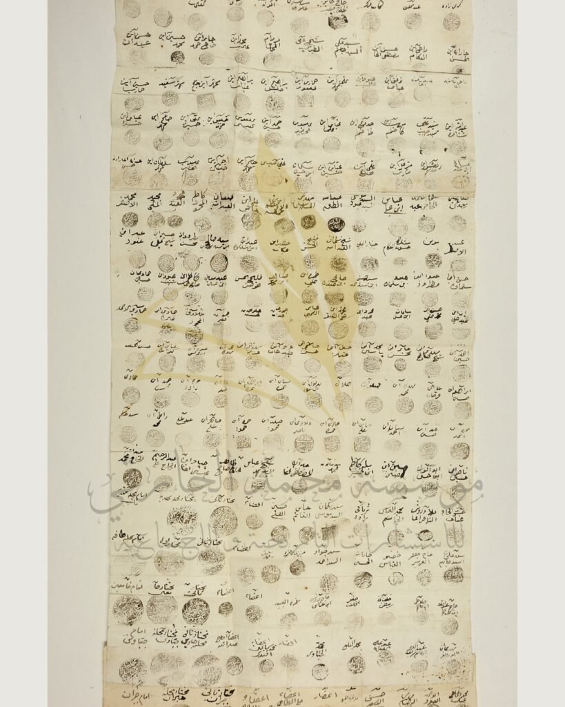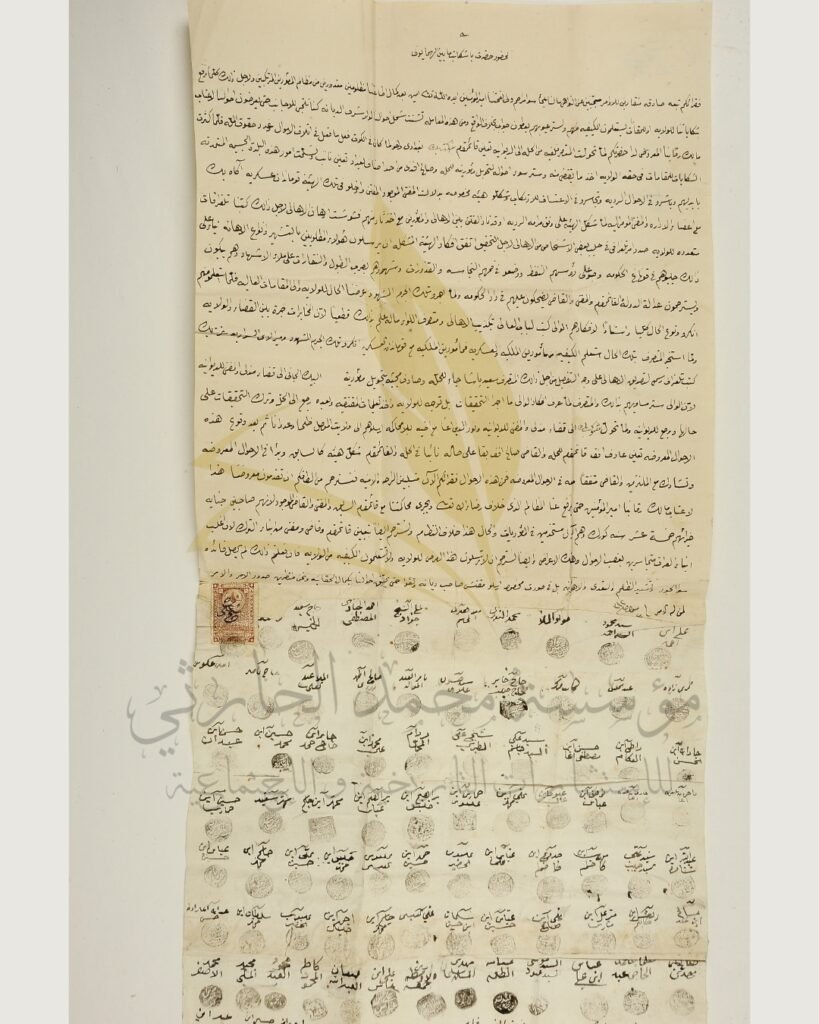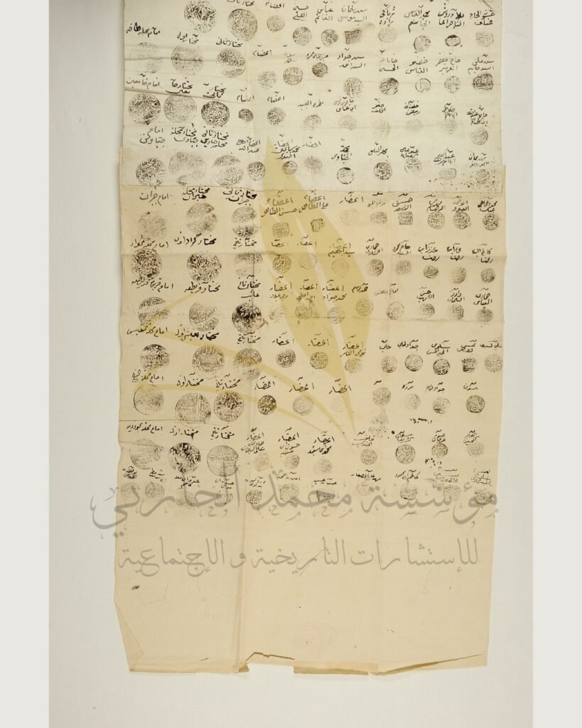 وثيقة عثمانية سنة 1312هجري موافق 1895ميلادي المرسلون يشكون من ظلم وتعسف المسؤولين في منطقتهم، خاصة القائم مقام والمفتي والقاضي، حيث ارتكبوا انتهاكات خطيرة بحق الأهالي من تعذيب وإهانة وسرقة حقوق. وعندما قدم الأهالي شكاواهم، جرى التستر على الجناة وتم إنكار الوقائع، بل نُقل بعضهم إلى مناصب أخرى بدلاً من محاسبتهم. ويطالب الأهالي برفع هذه الشكوى مباشرة إلى أمير المؤمنين، دون إحالتها إلى الولاية المحلية، لأنهم فقدوا الثقة بعد التجارب السابقة. كما يطلبون تعيين مسؤولين من الأتراك بدلًا من المحليين، لضمان النزاهة والعدالة، ولإنهاء معاناتهم الممتدة منذ سنوات. ** توقيع وأختام اصحاب الوثيقة * شيخ علي * حاج سعيد الخميس * أحمد المصطفى * الشيخ علي جواد * هلال بن الجاسم * محمد النوري * جواد بن عبدالمحسن * سيد محمود سيد أحمد * علي بن احمد * محمد بن زاده * عبد الجليل * حاج جابر الحاج.... * سيد صون السيد علوش * ناصر العبد المولى * صالح المهدي * بن العلي... * حاج ناصر * امير عكوس * حسن ابن عيدان * حسين ابن محمد * جابر ابن حاج حمد * محمد ابن علي * ناصر المحمد * شيخ علي المطيري * سيد علي السيد جاسم * حسن ابن مصطفى آغا * راضي ابن العكام * جاد ابن محسن * ناصر ين عبدالله آغا * عارف بن عبدالله آغا * توفيق ابن عباس * عبود ابن علي * علي ابن محمد * حمادي ابن عليوي * ابراهيم ابن خليل * ابراهيم ابن عباس * محمد ابن جاسم * محمد سعيد * حسين ابن حمادي * عباس ابن حسين * جاسم ابن محمد * علي ابن حسين * خليل ابن محمد * عيسى عليوي * حمد ابن حسين * عليوي.... * عباس ابن علي * جدوع ابن كاظم * مهدي ابن كاظم * سيد علي السيد حبيب * عبدالله ابن شناوه * سالم ابن عيد * علي ابن مشاري * علي ابن صالح * عباس ابن حسين * سلمان ابن حسين * علي عيسى * جاسم ابن محمد * احمد ابن خليل * عليوي... * سلطان ابن محمد * عبدالله حسن * محمد الأصفر * محمد المسلمي * محمود العبد * كاظم المحمود * ..... العبدالله * علي ابن عباس * امين جمعه * مهدي سلمان * عباس الطعمه * السيد موسى السيد عبود * عباس ابن علي * علي بن محمد الحاج عبد * صالح بن مهدي * عبيد الأصفر * حسون العكام * جبر العلي * شيخ سلمان العبدالله * فليح الحسن * خضير بن..... * عبد ابن شناوه * سيد صالح ابن سيد مهدي * مطرود ابن محسن * حسين ابن شيخ علي * عنود الحمداني * حمادي ابن حسين * عبود ابن.... * كاظم العباس * عبدالله ابن حسين * فايح محسن عوض * ضاهر ابن محمد * حمزة ابن علي * صالح ابن عبده * سيد حسن ابن سيد احمد * عبد ابن سلمان * عبود ابن مطرود * حسن ابن سلمان * حسن ابن محمد علي * سلمان ابن حسن * محمود ابن عبد * محمد بن علي الصغر * عباس فهمي * جارالله ابن عيدان * حسن بن علوش * جمعه بن حلمي * علاوي المحمود * حمادي ابن عميرة * حمادي الأحمد * حسن الحبيب * عباس ابن كراع * عبود ابن درويش * محمد ابن مهدي * مهدي ابن عزيز * عزيز ابن طيرخان * هاشم ابن حسن * حسين ابن ابراهيم * محمد ابن ياسين * جابر ابن محسن * مهدي ابن شيخ صالح * احمد ابن حسين * ابراهيم ابن حسن * علي ابن فرحان * مهدي ابن محمد * صفوت * هلال الجاسم * عليوي ابن حميد * بستان ابن حمزة * ابراهيم ابن حمزة * علي ابن عبد * حمزة ابن داوود * حميد ابن محسن * حمادي * سيد جاسم * راضي ابن محمد * عيد علي خلف * ظاهر ابن علي * حمزة ابن حمود * حبيب ابن محمود * علاوي ابن ناصر * حمادي ابن حمزة * عباس ابن علي * سنان ابن أحمد * عيد ابن حسن * حمزة ابن أحمد * ناصر ابن حسين * ابو الولي ابن حسين * حسين ابن عبد * كاظم ابن خضير * رشيدان بن محمد * عبدالله المصطفى آغا * شيخ عباس شيخ محمد * ظاهر الحاج صالح * جياد ابن عيسى آغا * عبدالرحيم الحاج علي * عبدالله بن محمد العواد * ابراهيم جاسم * عباس الغانم * حسين العلي * سيد سلمان السيد موسى * محمد العباس الجاسم * درويش التاجر آغا * حسون الحاج عساف * سيد علي السيد جاسم * حاج جعفر العربي * خضير العباس * جارالله الحسن * راضي بن العكام * سيد جواد السيد احمد * حسين بن حمزة * سلطان ابن نهر * مختار محلة جامعين 1حمادي ابن حميد * مختار ثاني محمد ابن عبدالله * مختار أول * عباس ابن شناوه * م